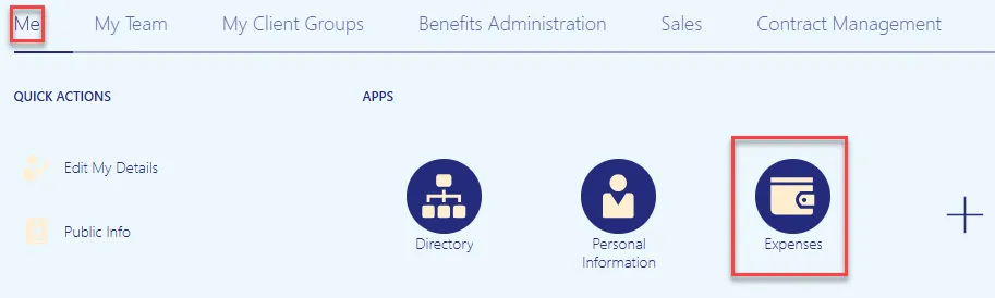 Step 16: Once the journal has been approved and posted, a new expense report will need to be keyed to close the open cash advance. From the Home screen, click the Me tab and then select the Expenses application.