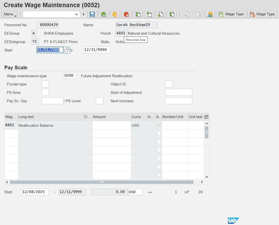 There is a need to create and/or maintain reserve balances on Infotype 0052 -Wage Maintenance. This is used for Reallocation and Range Revision actions with balances.