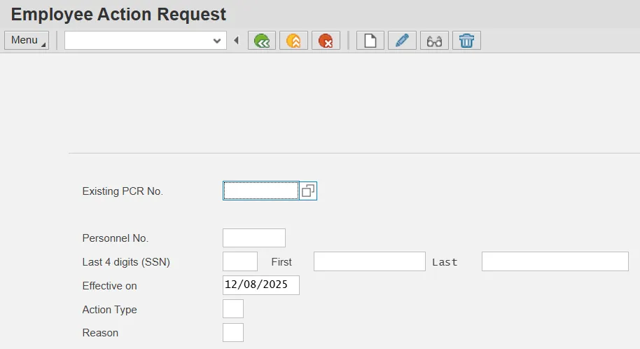Leave the Existing PCR No. field blank if you are creating a new PCR.
