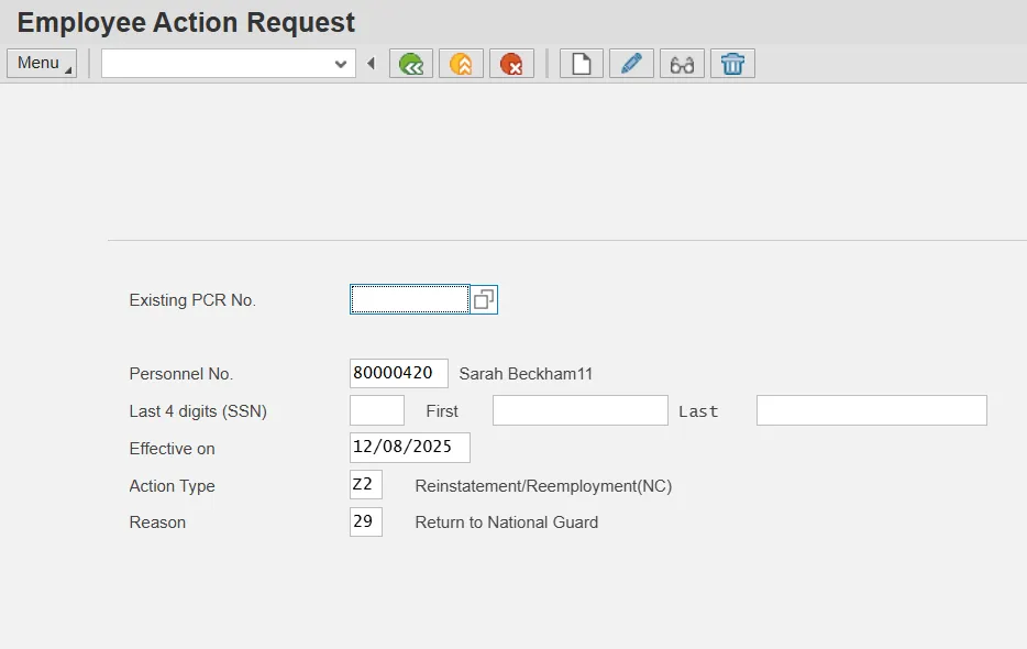 These instructions assume you have initiated the Reinstatement/Reemployment Personnel Change Request (PCR) in workflow already, and you have an approved PCR ready to be processed as a Reinstatement/Reemployment in the system.