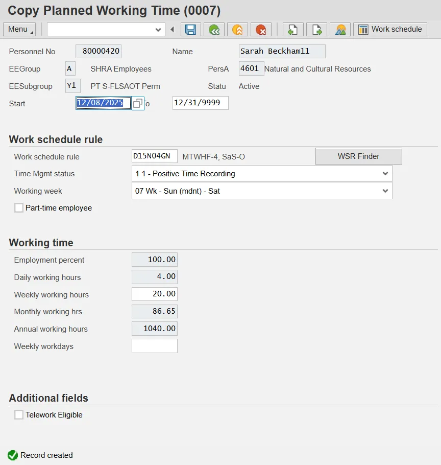 Verify the populated information is correct Personnel Subarea, Employee Group, Employee Subgroup, pay information (other than hourly salary amount) should be populated from position.