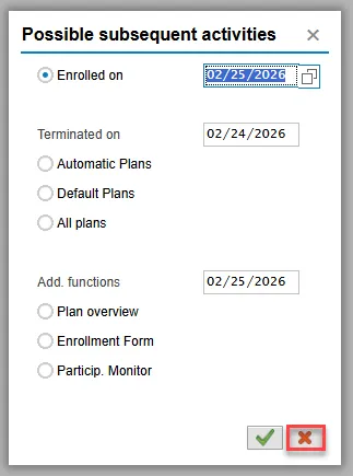 Step 8.    Choose the X to close the Possible subsequent activities pop-up.