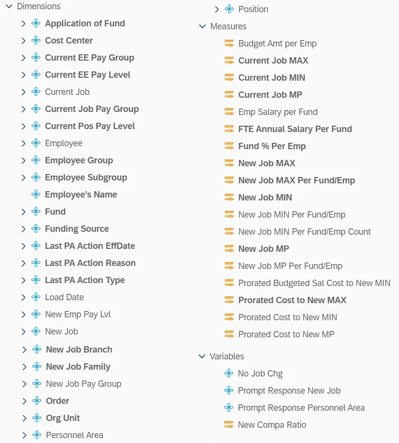 - Fund % Per Emp: this measure may be summarized for each position but does not make sense to sum as a grand total.