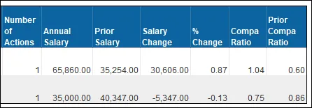 - Only the most recent salary action resulting in an increase or decrease is selected.
