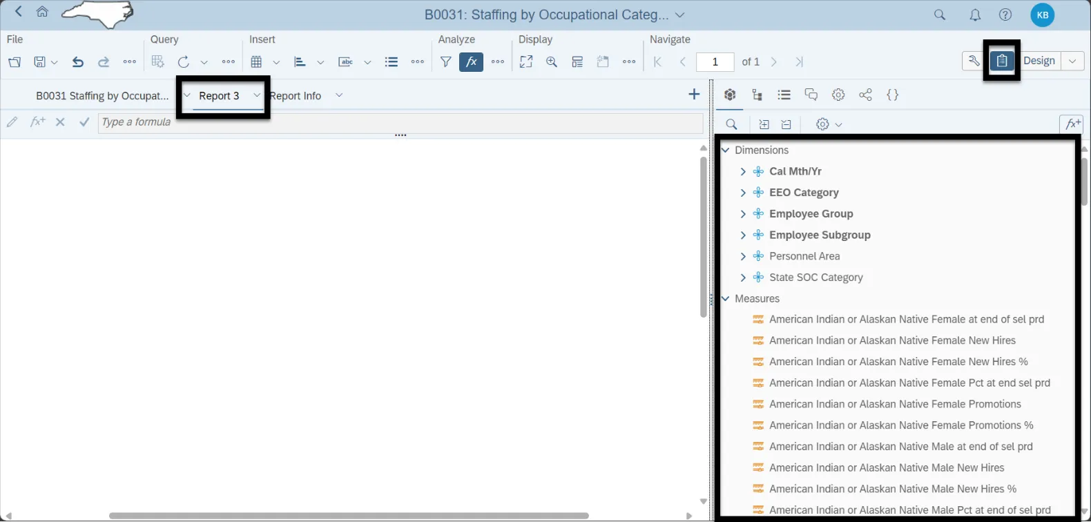 - Right-Mouse click on the reporting tab ‘B0031 Staffing by Occupational Category.