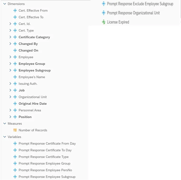 - Report displays a record only for Certificate Types assigned to an Employee License, Certification or Registration. Records with no Certificate Types assigned are not displayed.