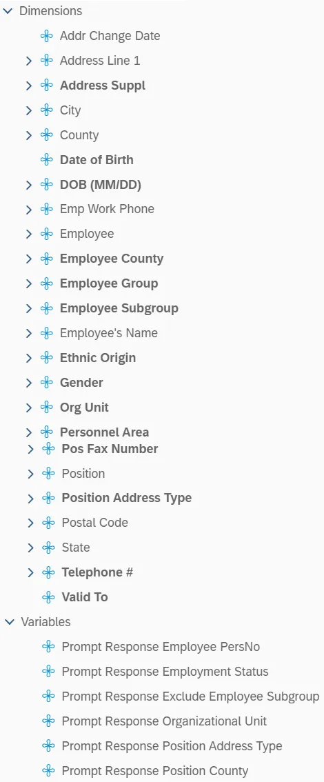 • ‘EE Telework Eligible’ and ‘EE Telework Type’ can be added to report by expanding the Employee attributes (expanded list) in Available Objects.