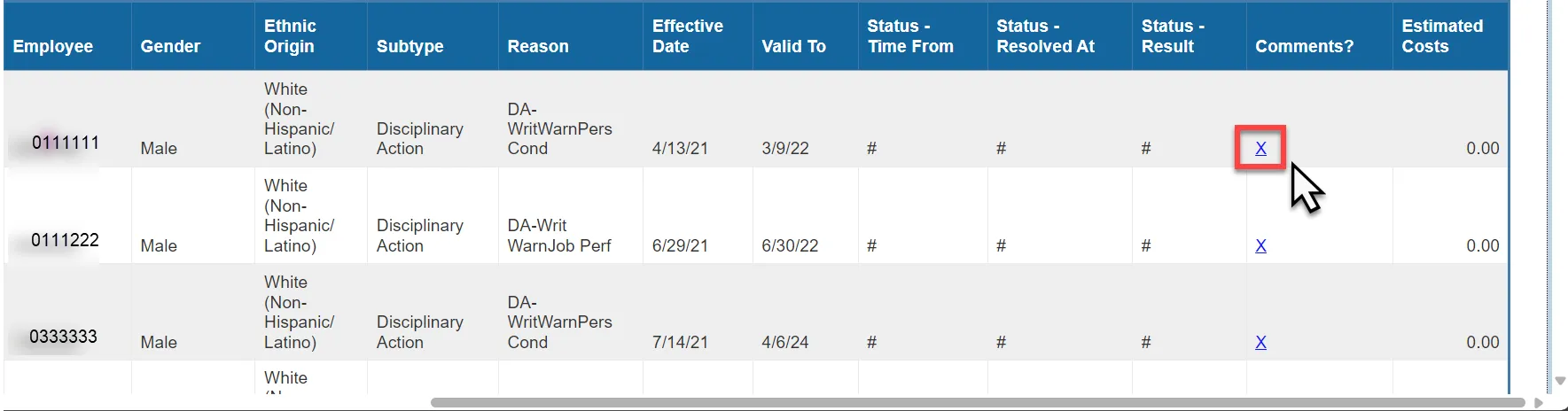 This report is used to monitor and track the status of disciplinary warnings for active employees.