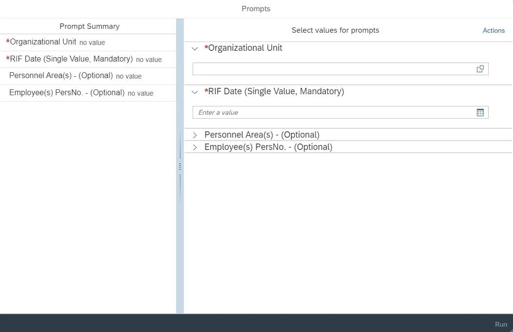 - Personnel Area(s) – (Optional)