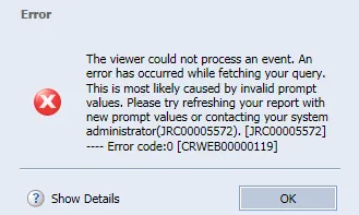 - The RIF date for the prompt selection must be based on 1st of month. If something else is entered, the following error will display, and you must close the report and re-execute from the original report folder.