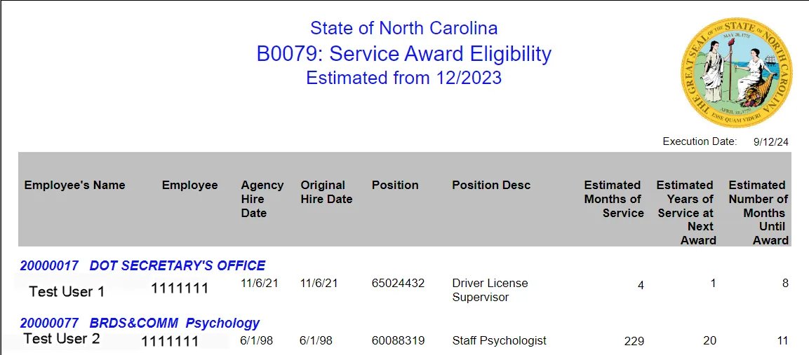 Agencies can generate this report to obtain a list of eligible employees to prepare for upcoming Service Awards.