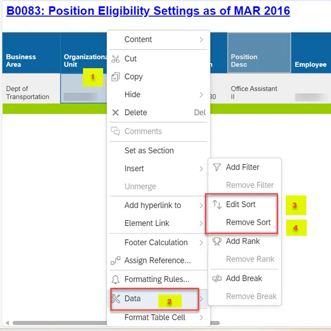 3.    Click on Edit Sort, select ascending or descending sort as needed (3).