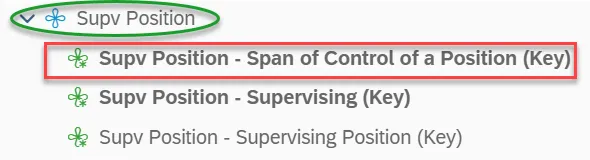 - ‘Span of Control of a Position (Key)’ dragged from ‘Position’ master data attributes shows the subordinate position’s Span of Control.