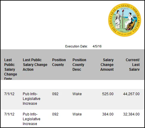 • The data elements available on the report is Pursuant to N.C. Gen. Stat. §126-23.