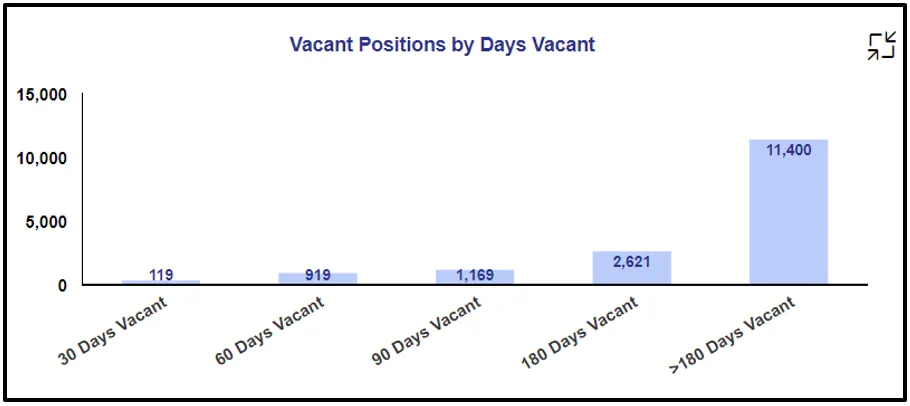 - Vertical Bar Chart showing count of Vacant positions grouped by Number of Days Vacant.