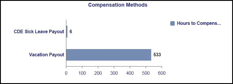 - Horizontal Bar Chart showing Hours to Compensate counts by Compensation Methods.