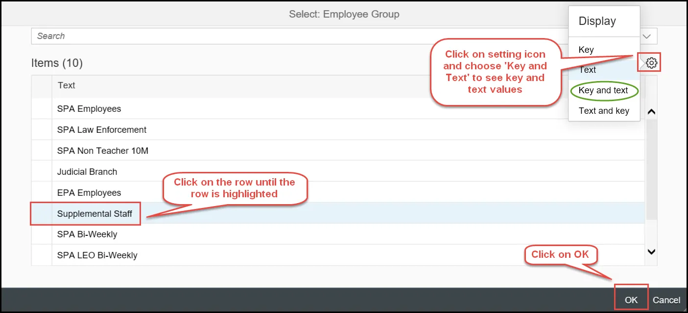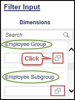 Step 1: Choose Employee Group or Employee Subgroup filter dimension from Filter Input panel.