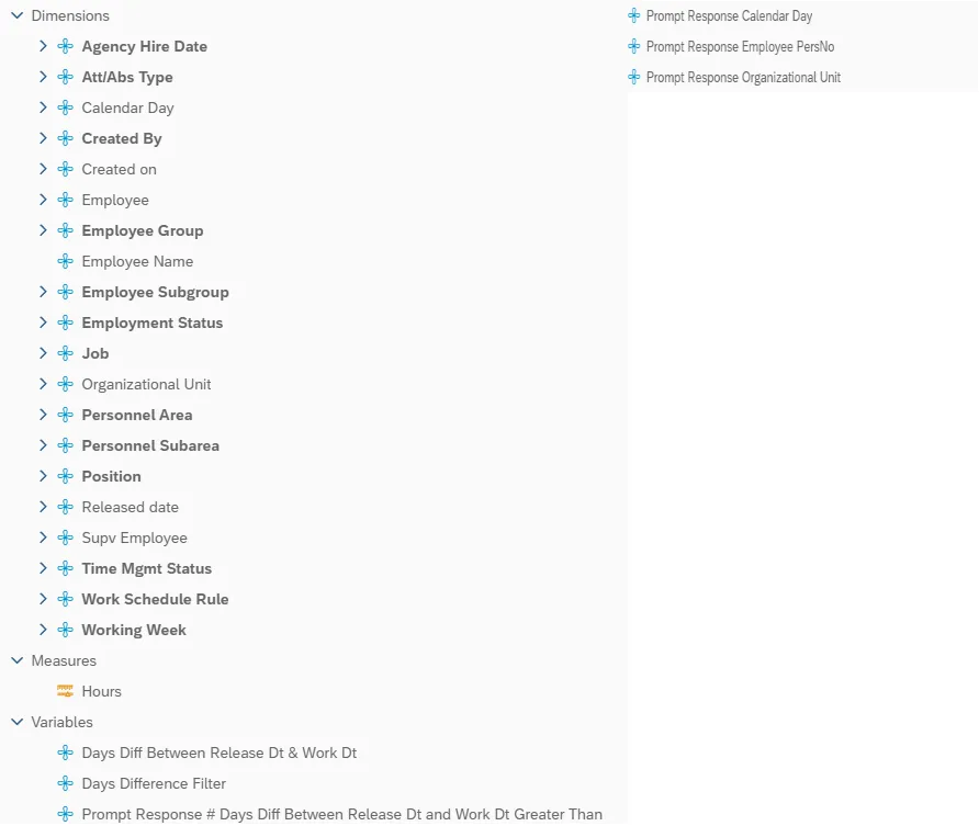 This is a list of the available objects that can be added to the report, from the Document Dictionary once in the Design mode: