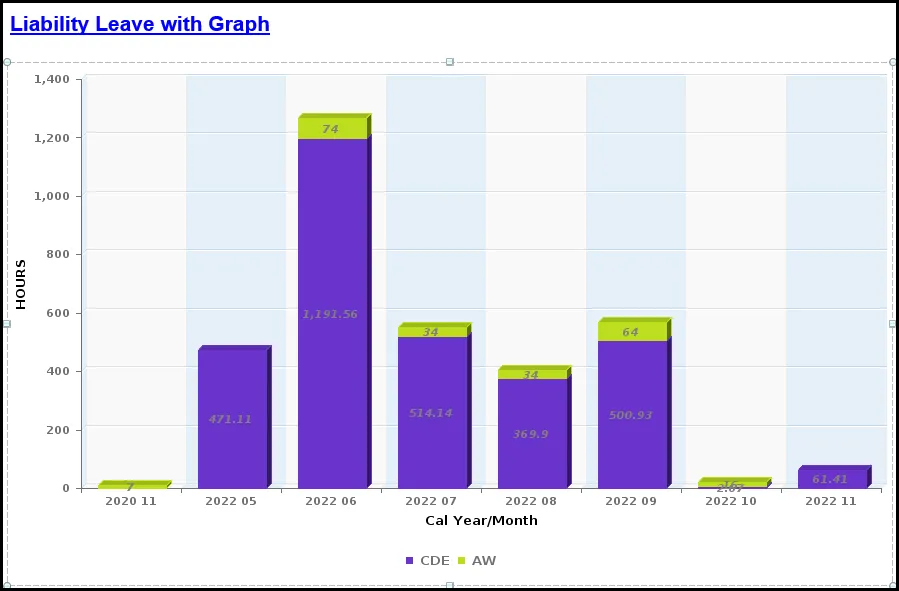 Agencies use this report to help determine when Liability Leave is going to expire. This will assist Agencies with either scheduling EE to make up time or create an IT2012 to repay liability using approved leave or LWOP. If liability ages out, EE will no longer process in time evaluation.