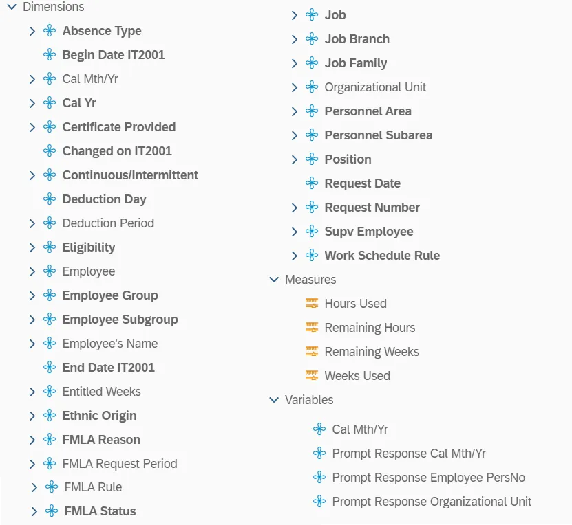 This report provides information about total amount of FMLA leave, when eligibility begins and ends, the number of hours used, number of hours remaining, number of weeks used and number of weeks remaining.