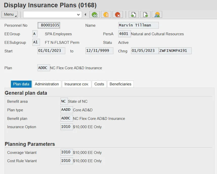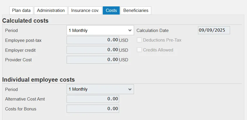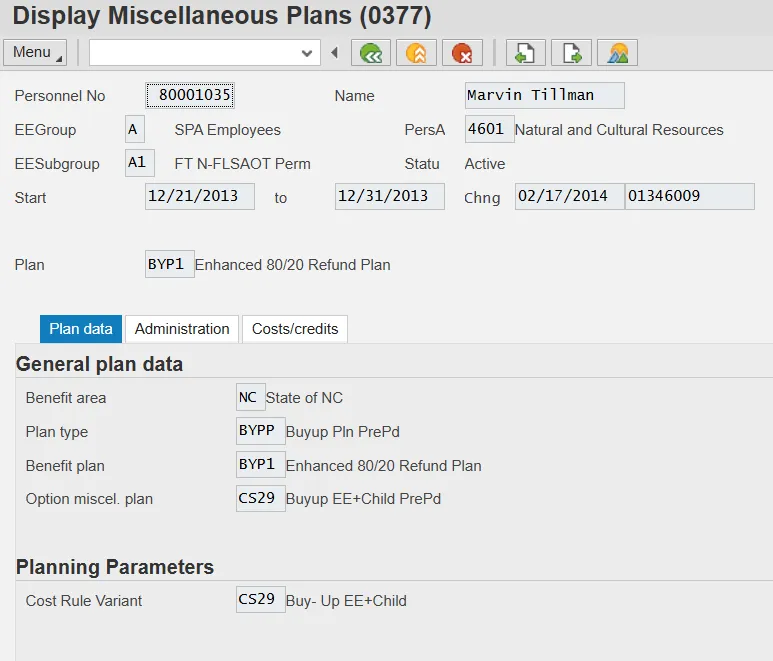 For each insurance plan in which the employee participates, a separate record exists. The infotype is used for payroll and for evaluations of employee benefits data.