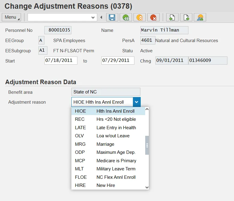 This infotype stores adjustment reasons that determine the changes employees can make to their benefits.  The type of adjustment reason is the subtype of the record.