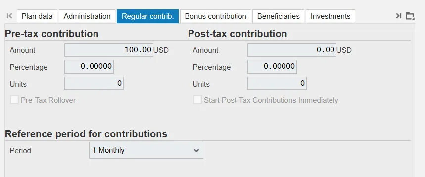 The Regular contribution tab shows the contribution made on regular payroll runs.