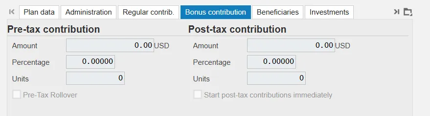 The following tabs on the Savings Plans infotype are not being used by the Integrated HR/Payroll System: