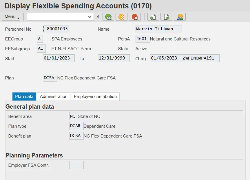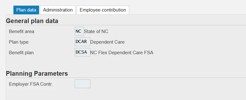 The Plan data tab shows how the plan fits into your benefit structure.  It stores the employer contribution rule variant for the plan.