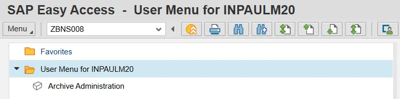| Command | White alphanumeric box in upper left corner used to input transaction codes | Enter value in Command Example: ZBNS008 |