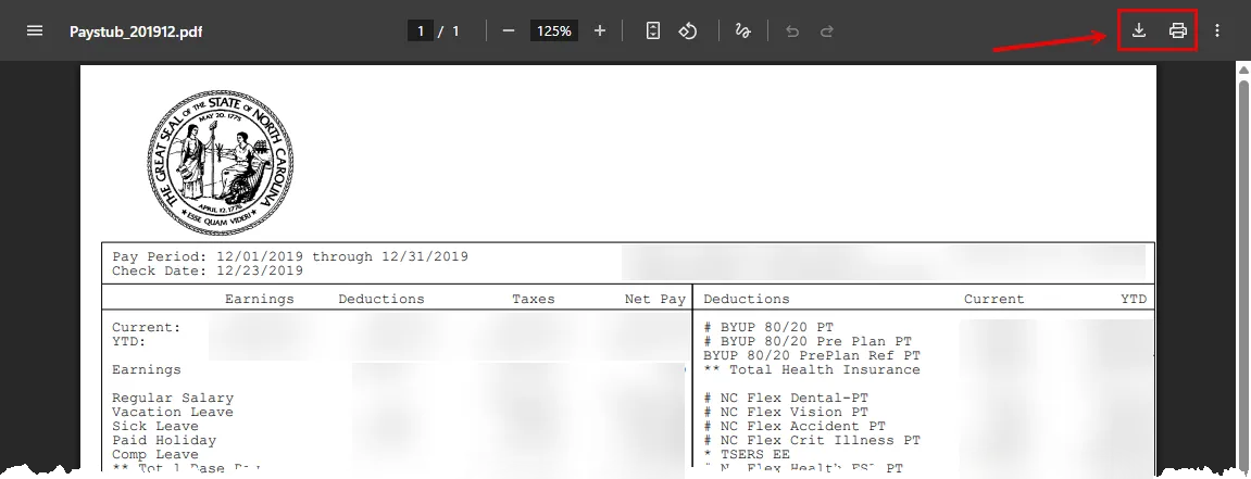 Step 7. Click on Download or Print icon to save or print the pay statement.