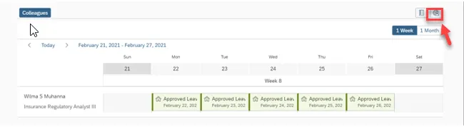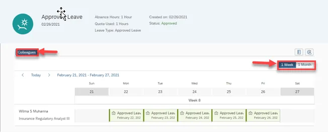Step 9.    The Colleagues feature is not activated. You can use the 1 Week/1 Month toggle to navigate with this screen.