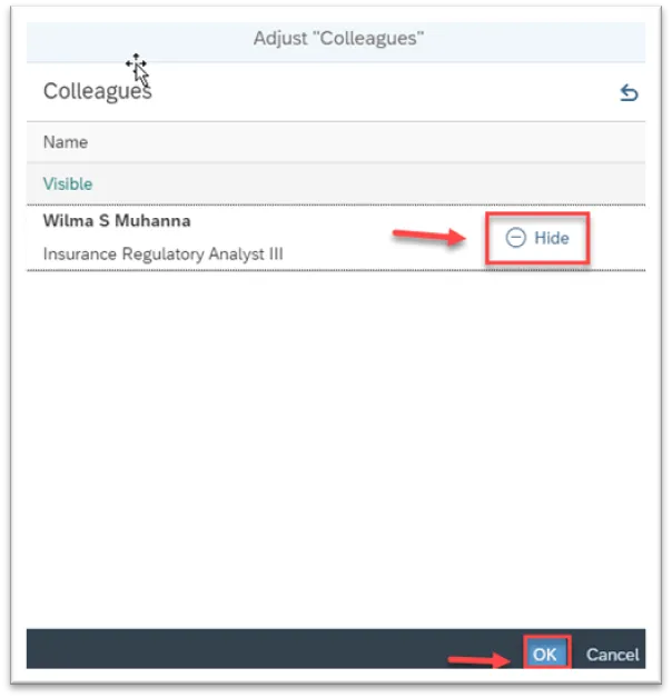 Step 12.    You can toggle to show or hide. It is not recommended to hide this information. Click OK when finished.
