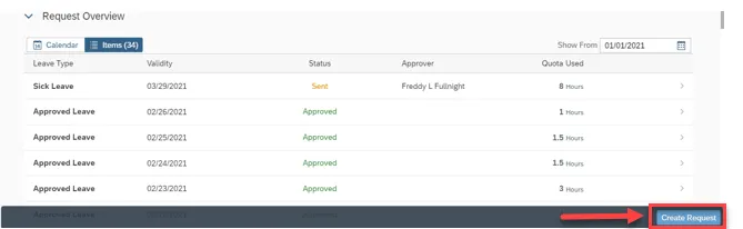 Step 17.    Back on the main My Leave Request page, click Create Request to create a leave request.