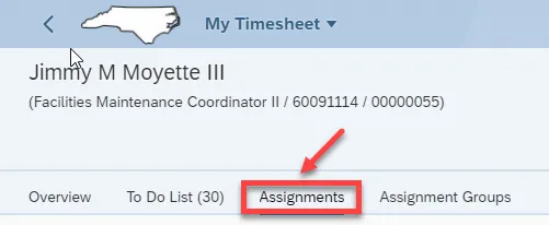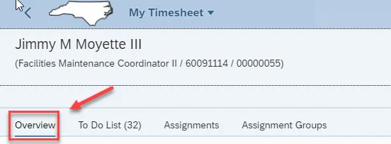 Step 3. All Time entry is completed within Overview. Click on Assignment.