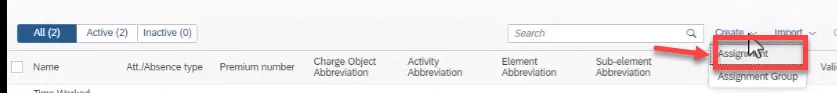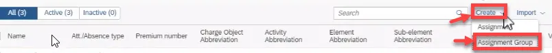 Step 31. There are now three different assignment we can assign to a group. To create an Assignment Group, click Create and click Assignment Group.