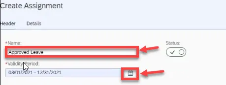 Step 29. This assignment will be named Approved Leave. Then select the date range for the Validity Period.