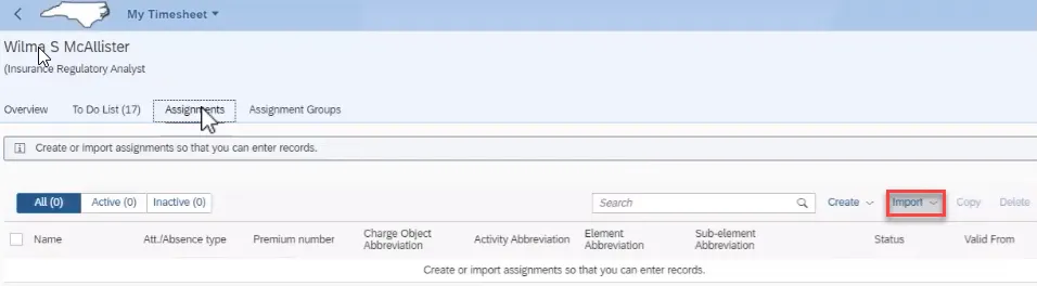 Step 4. Assignments are like templates and easy to set up. Employees like Wilma with no Shift Premiums or Charge Objects can use the admin upload Tool.
