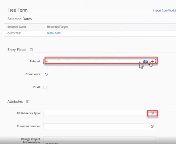 Step 44. When the free form entry is selected, notice the Attributes. This information is helpful to your manager when approving leave.