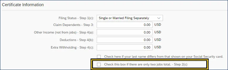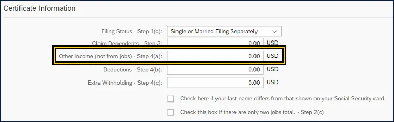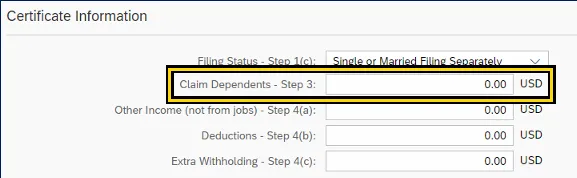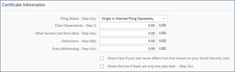 i. Certificate Information area can be edited by the employee. Employees can use the Federal W-4 form and additional IRS worksheets to calculate the information for each field.