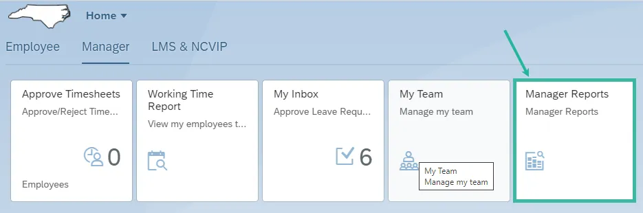To access the Comp Time Aging report, click on the Manager’s tab and then click on the Manager Reports tile.
