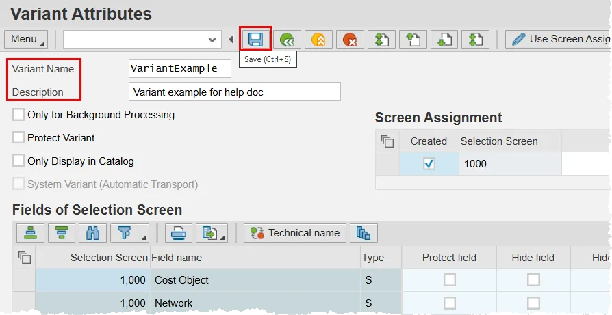 Note: You may elect to put a check in the Protect Variant check box. If you do so, other users can still use your variant, but they will not be able to make any modifications to it.