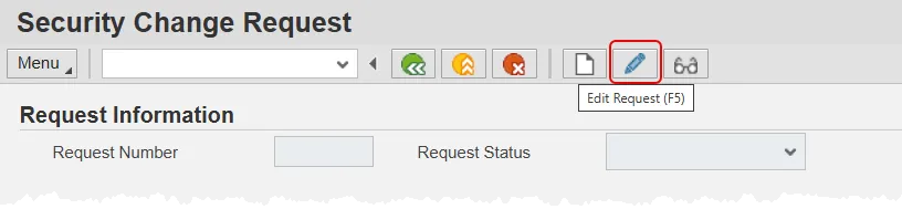 Step 2.    The Security Change Request screen will be displayed. Click the New Request button.
