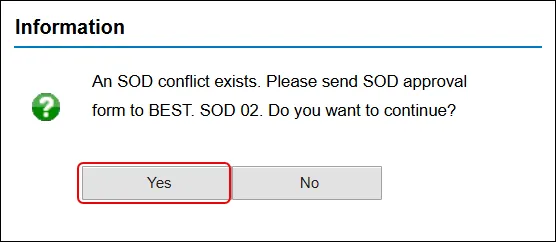 Once the SOD Risk Acceptance Form is signed, submitted, and received by BEST Shared Services, the role(s) will be granted.
