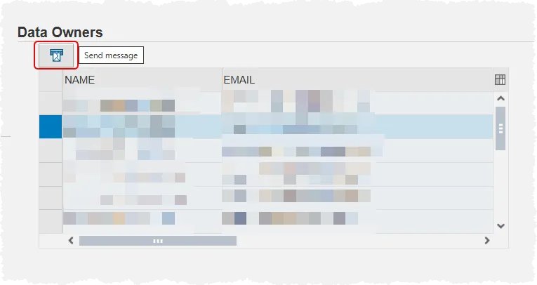 • If you used transaction ZSCR, you will send a message to one of your agency’s data owners to submit the request on your behalf. Locate the Data Owners section on the right side of your screen and then select one of the listed employees by clicking the box to the left of their name. Click the Send Message button above the list to notify them of your request.