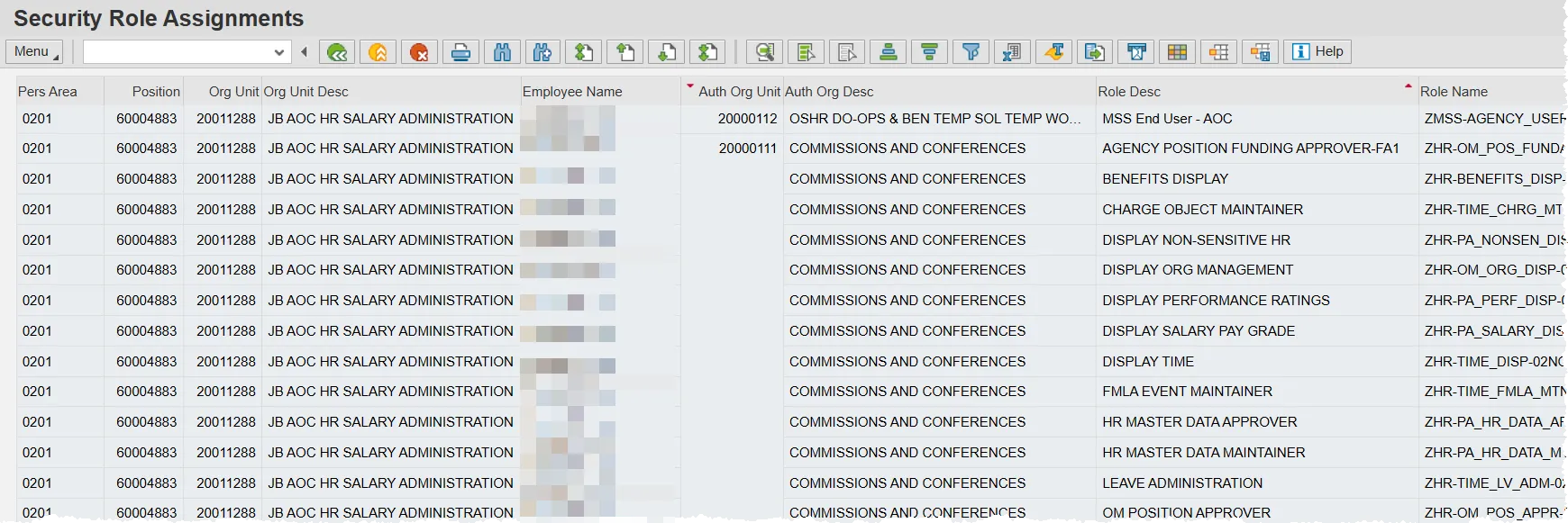 - Identifying the positions in an org unit(s) who have a specific combination of roles.