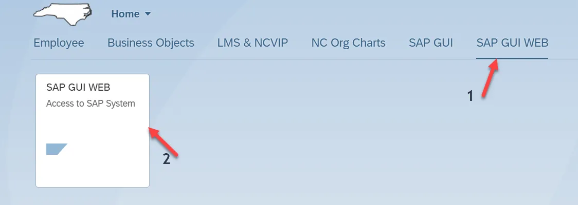 Step 2. Click on the SAP GUI WEB tab. Then click on the SAP GUI WEB tile. If you do not have this tab, please reach out to one of your agency’s Data Owners to request.