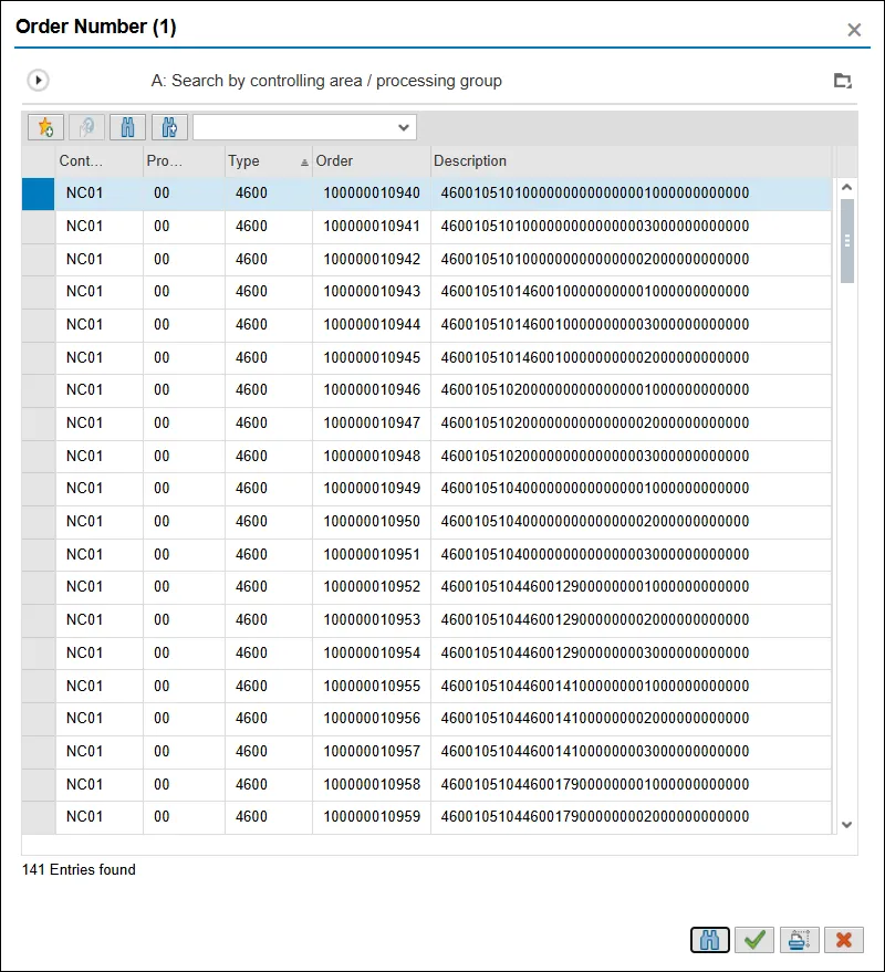 Note: The Order value is a non-intelligent number assigned by the system. It may be beneficial to search by the Description.