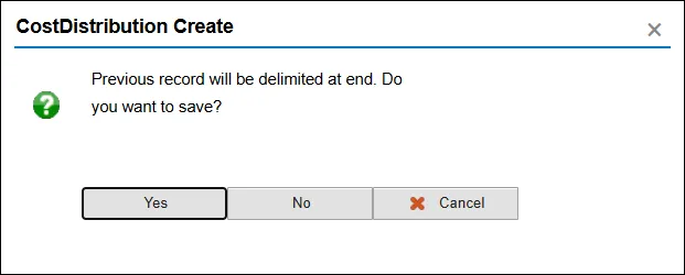 Step 13. In the CostDistribution Create pop-up window click the Yes button.