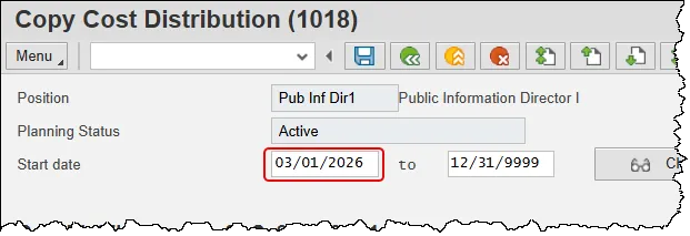 Alert! Be vigilant on this step. A position number may be present already when you access the transaction, so be sure to review the position number and name to ensure they are correct.